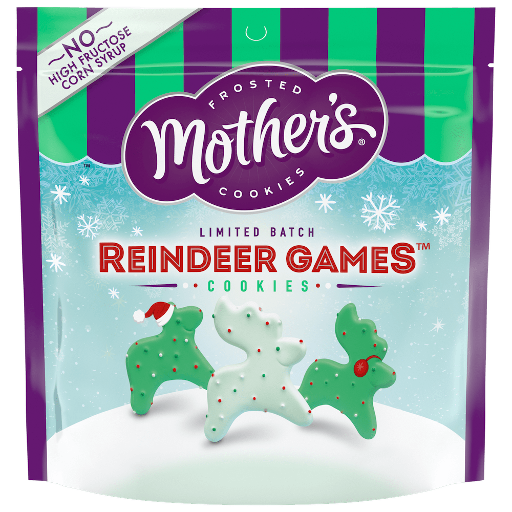 Sleigh the holidays with Mother’s Reindeer Games Cookies! These irresistible limited batch shortbread cookies come in adorable prancing reindeer shapes! Covered in green and white frosting and dotted with red, green, and white sprinkles, these holiday treats add fun and flair to every celebration. They’re perfect for cookie trays, lunchboxes, stocking stuffers, or gifting to family and friends. Enjoy them as they are or as playful toppers for cakes, cupcakes, and holiday desserts.